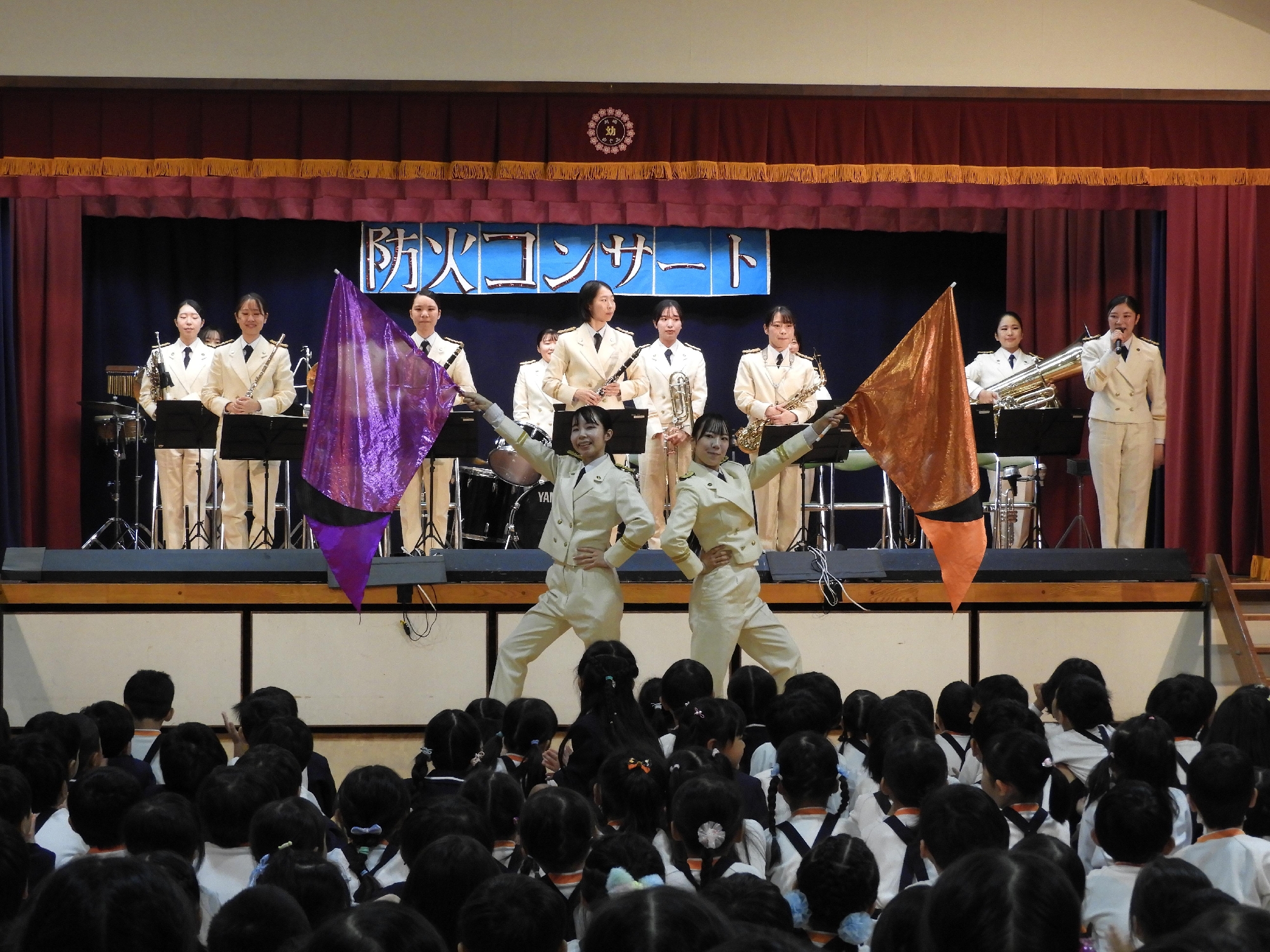 川崎市消防音楽隊、カラーガード隊レッド・ウィングスの皆さんが色々な音楽を演奏してくださったり、フラッグによる演技を披露してくださいました。
