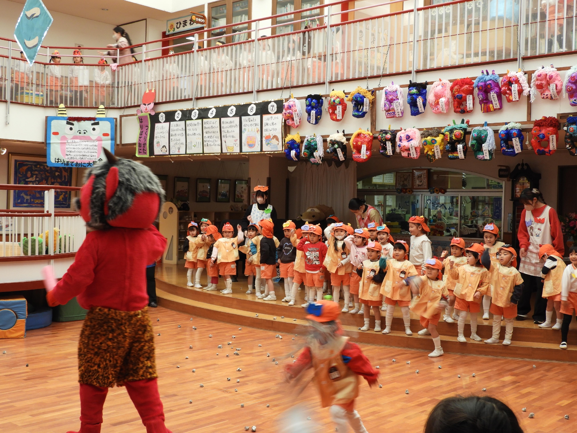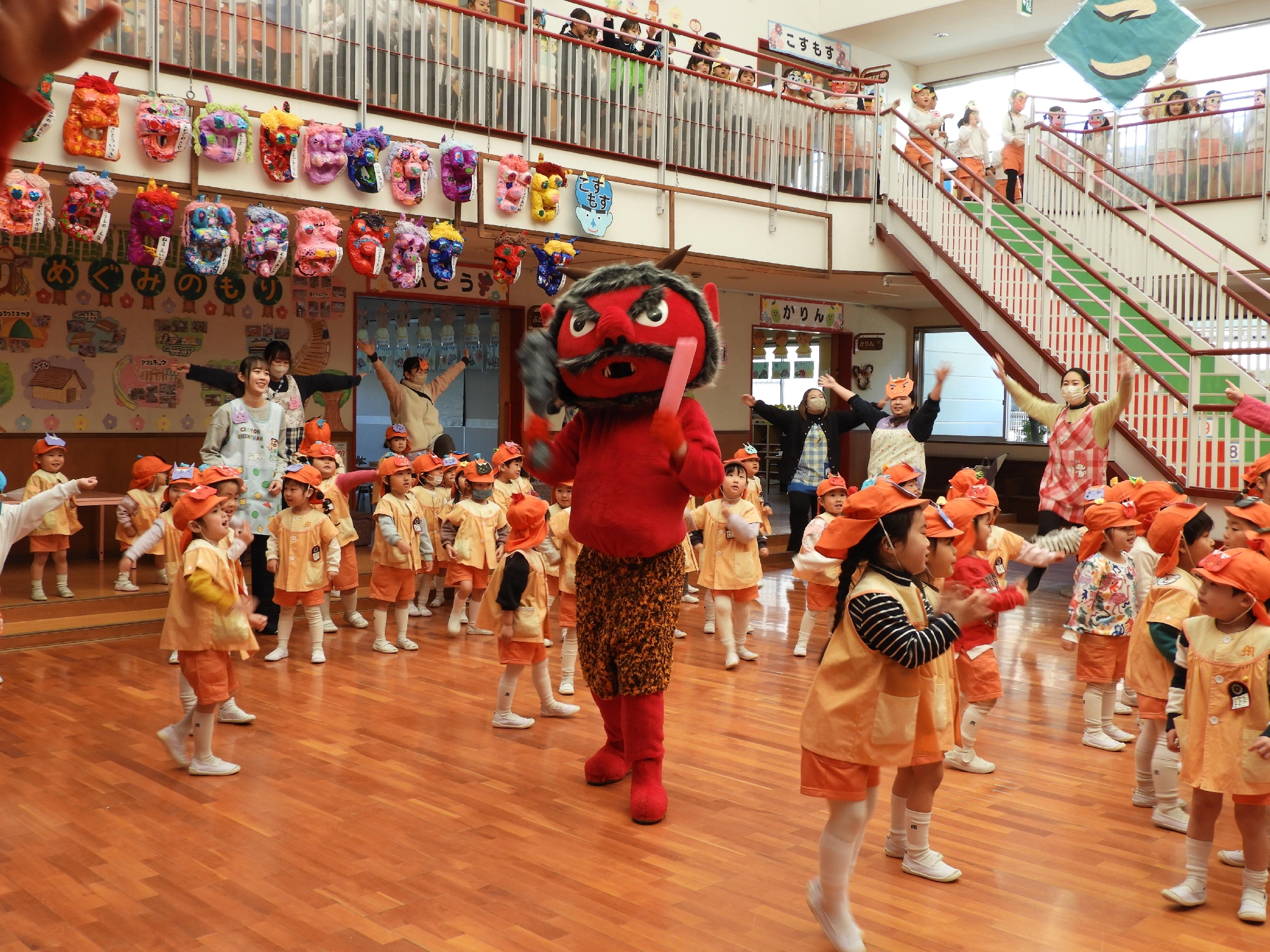 2月3日の節分の日に、川崎めぐみ幼稚園に優しい赤オニさんがやって来ました!